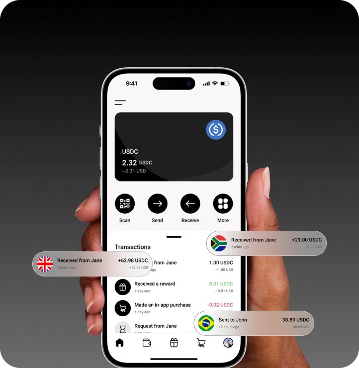USDC wallets with multi-chain send and receive to various supported chains.